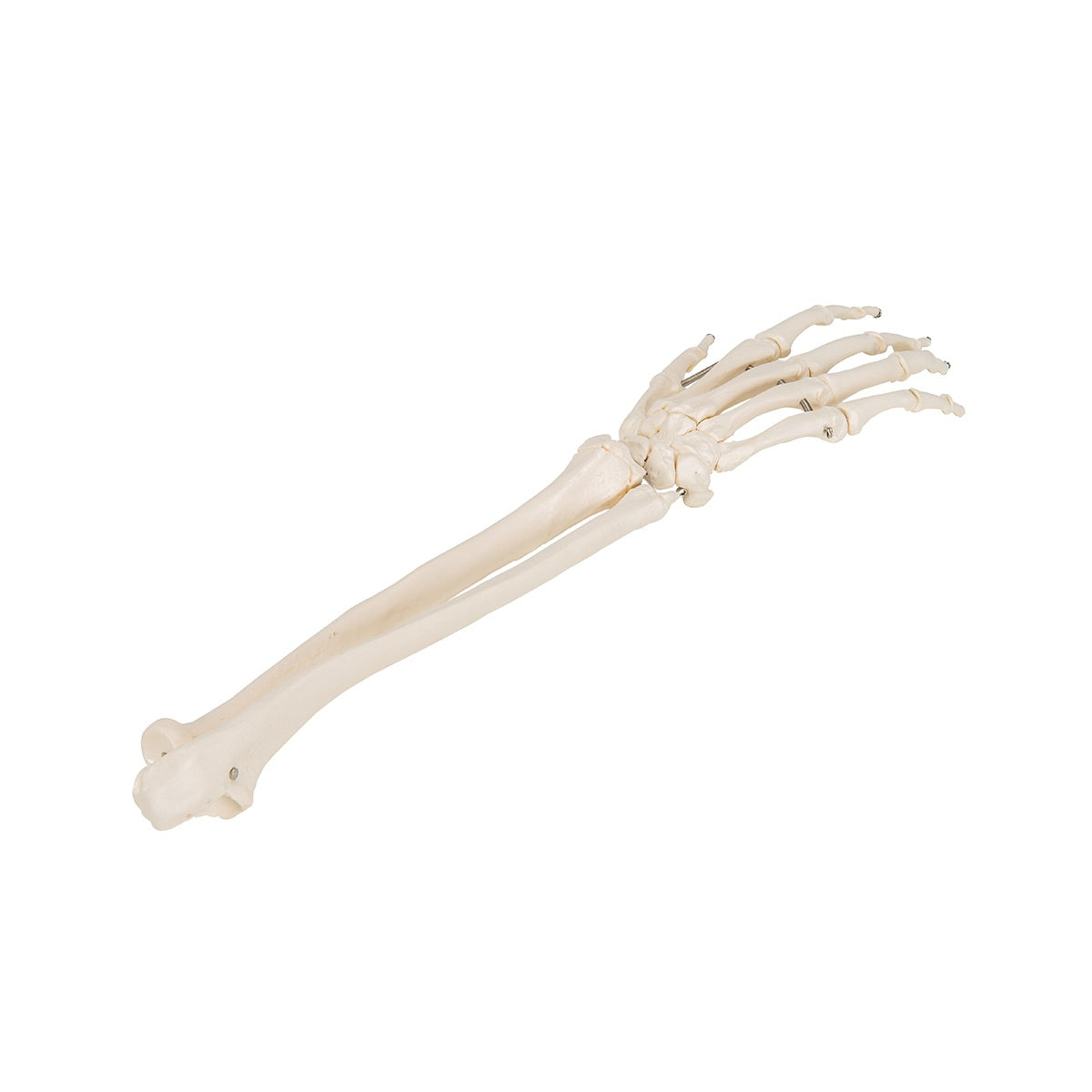 This high quality hand skeleton is wire mounted, naturally flexible through wrist. This hand skeleton model is slightly flexible through fingers to simulate the natural movement of the human hand.