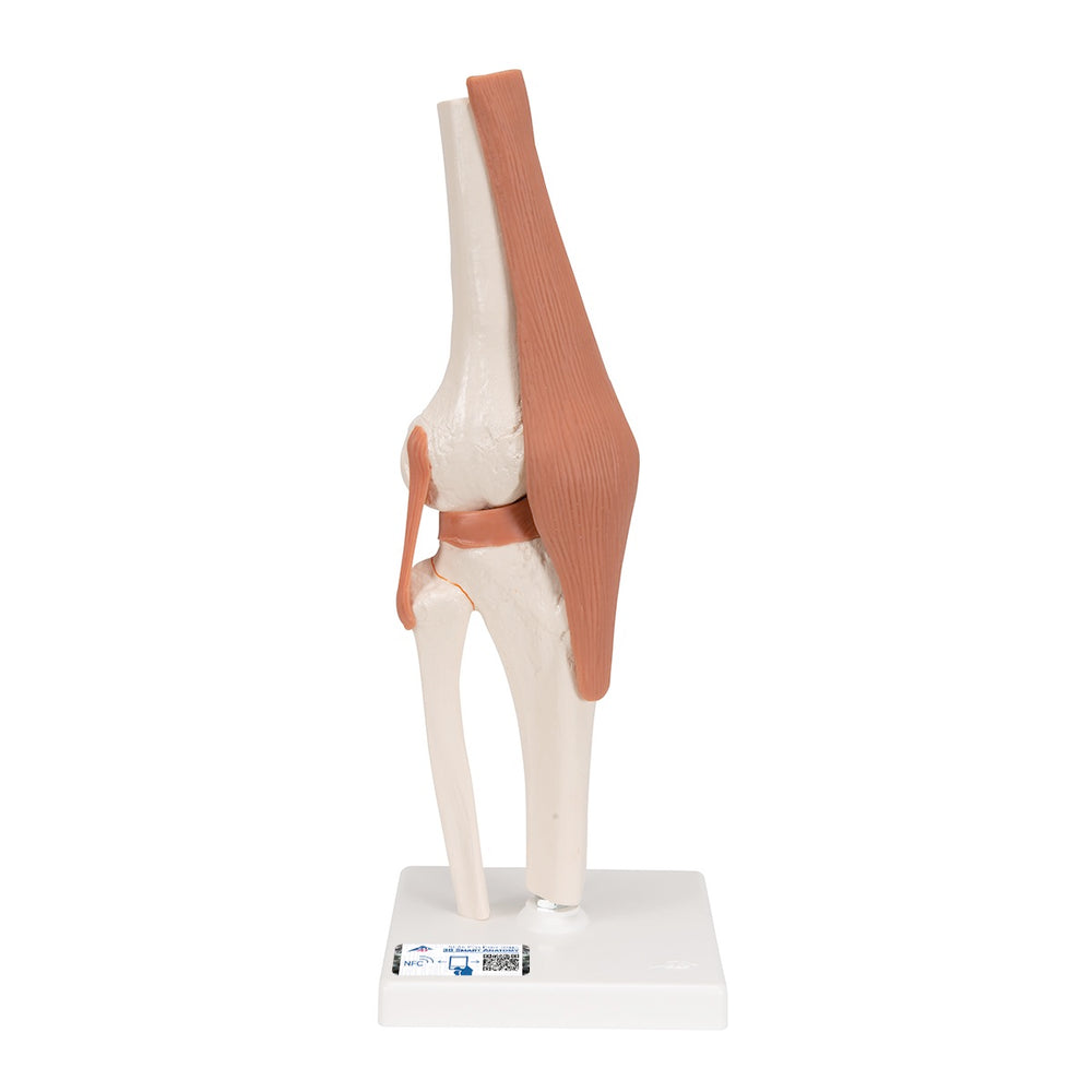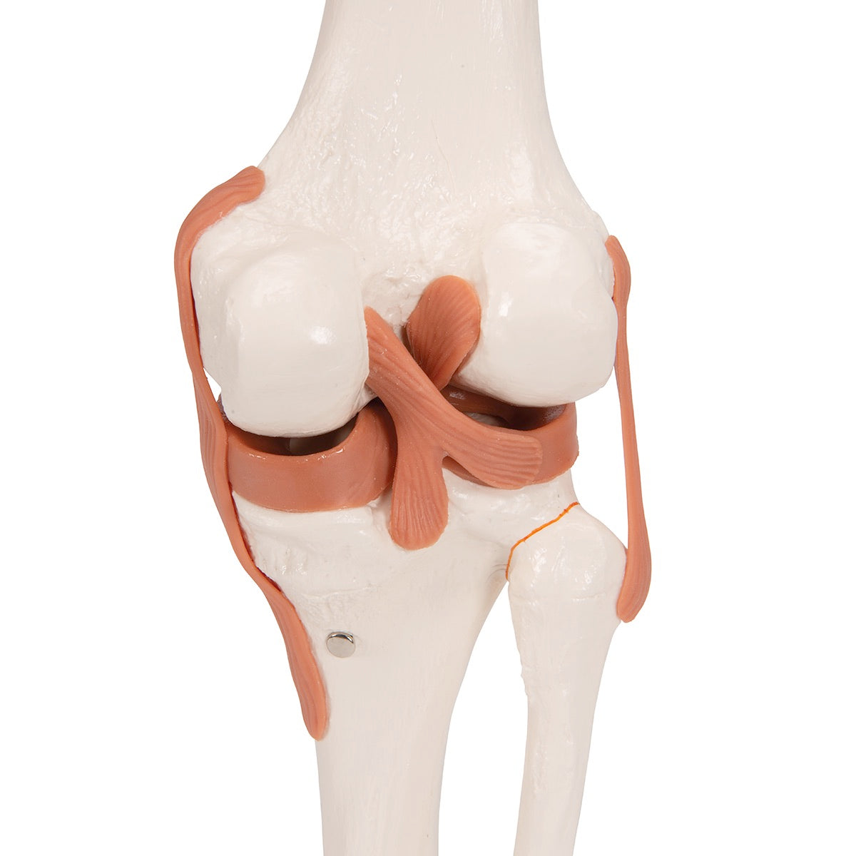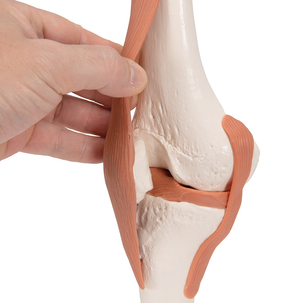 Model consists of portion of femur, tibia and portion of fibula; also includes meniscus, patella with quadriceps tendon and joint ligaments, including the ACL and PCL.