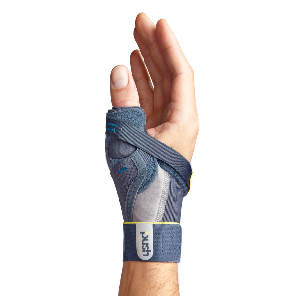 - The Push Sports Thumb Brace offers a solution when there is continuous pain in the thumb as a result of overstretching the middle thumb joint (MCP-1) due to a ball injury or fall when skiing.