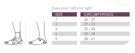Left and Right Size 1 - 26-29cm, Size 2 - 29-32cm, Size 3 - 32-35cm, Size 4 - 35-38cm, Size 5 - 38-41cm